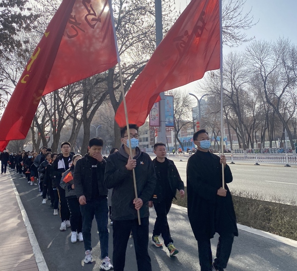 图1 yl23455永利官网青年师生徒步前往军垦博物馆