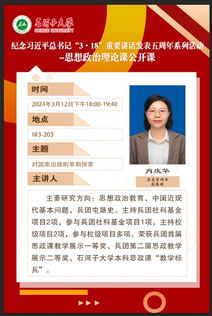 2019年3月18日,习近平总书记在学校思想政治理论课教师座谈会上发表重要讲话,明确提出思想政治理论课是落实立德树人根本任务的关键课程,要求要把思想政治理论课建设摆上重要日程,采取有效措施推动思政课内涵式发展。在习近平总书记“3·18”重要讲话发表五周年之际,为继续弘扬讲话精神,推动落实立德树人根本任务,提高广大学子的思想觉悟,yl23455永利官网积极开展思想政治理论课公开课活动。