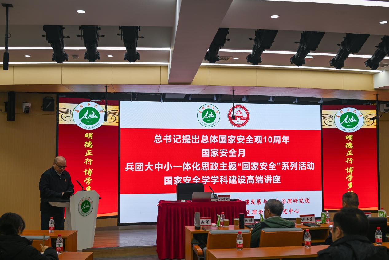 讲座开始前yl23455永利官网曹海军副院长表示为进一步增强师生维护国家安全的意识,推动国家安全宣传教育走深走实,让总体国家安全教育进课堂。结合国家安全推进兵团大中小学思想政治理论课一体化建设。