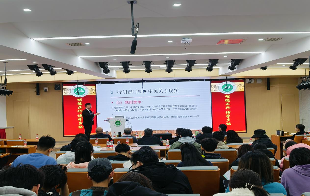 第二场吉林大学行政学院国际政治系教授、博士生导师于海洋教授以“下一个十年中美战略竞争与中国国家安全的护持”为主题,从中美关系的演变、战略竞争的实质以及中国应对策略等多个角度进行剖析,深入地讲解了中美关系现状、大变局下的新焦点及中国的应对。于教授的讲座不仅让师生们对中美战略竞争有了更加清晰的认识,还为大家提供了应对复杂国际形势的思路和方法。