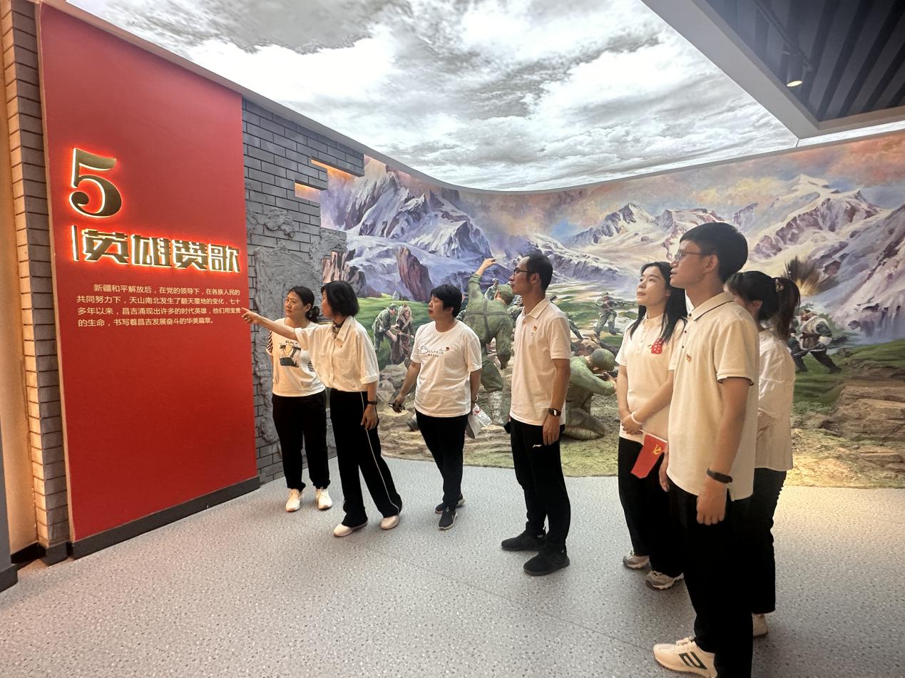 追寻红色记忆。学院师生们走进新疆新辉红色记忆博物馆博物馆参观研学,馆内陈列的党的光辉历程、新疆和平解放、民族团结等多个主题、数万件展品,令大家印象深刻、感受颇深。师生们结合所学专业就如何开展思政实践教学与博物馆工作人员进行交流研讨,表示将用好红色资源,赓续红色血脉,发挥好红色文化育人作用。学院就共建实践教学基地、联合开展铸牢中华民族共同体意识教育与博物馆达成合作意向。