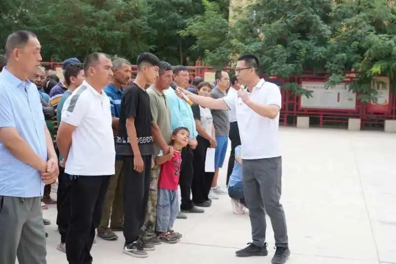 yl23455永利官网教师张勇在连队普法宣讲中与当地群众互动