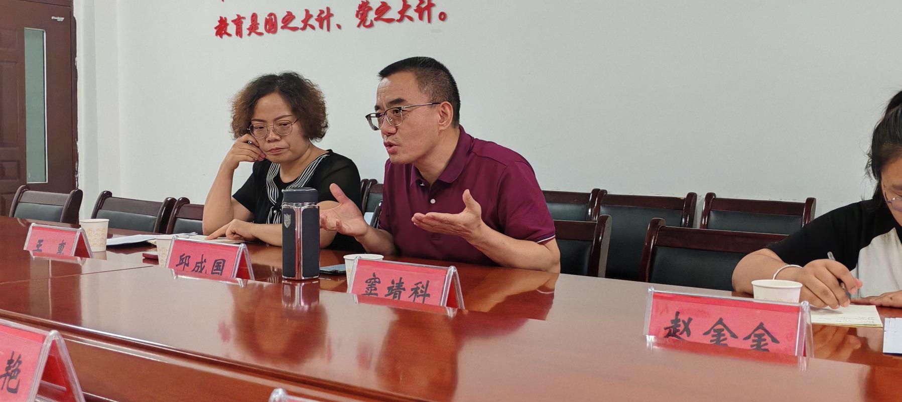 7月8日,调研组到达第二师华山中学,校党委书记、校长邱成国,石河子第十一小学党支部书记、校长张艳,和兵团名师工作室主持人、华山中学初中道德与法治老师王惠等参加了座谈。