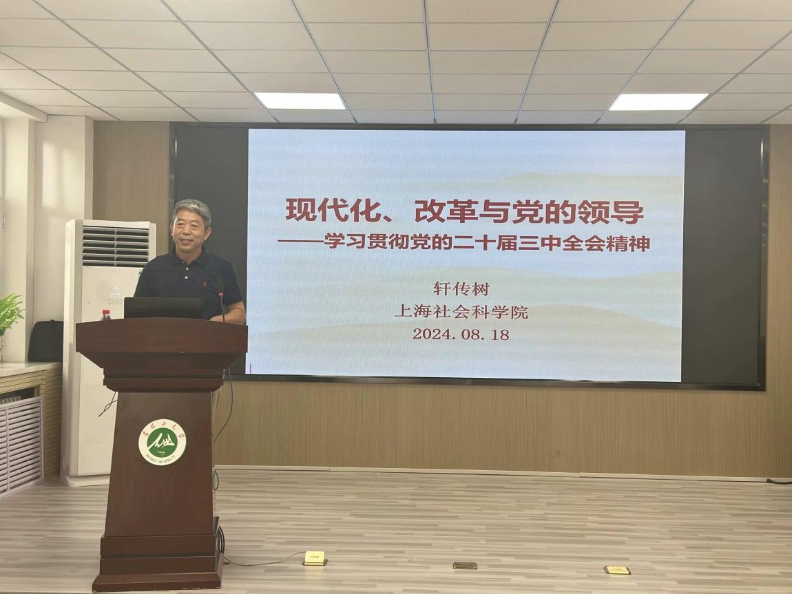 会上,轩传树教授以《现代化、改革和党的领导》为题做主旨报告。他指出,贯穿三中全会的关键词为现代化、改革、党的领导。他从三个关键词切入,在比较的国际国内视野下,从中国式现代化模式类型及其属性、改革开放的历史功能与现实方位、党的领导与党的建设三个方面阐释了其中深义和内涵,既有理论高度,又有前瞻性、学理性思考。