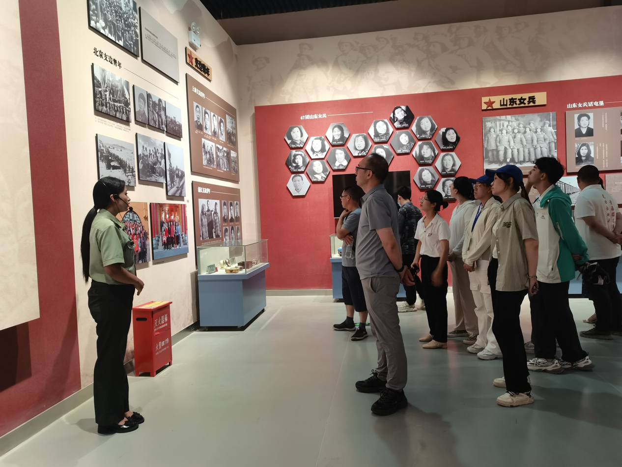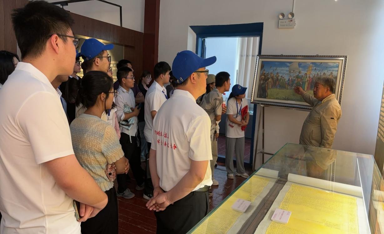 7月8日,实践团一行在和静县参观了北山森林公园爱国主义教育基地,这里是展现中国人民解放军光辉历史和英勇斗争的重要窗口。在解说员的引领下,调查团逐一参观了放映厅、军垦文化展示厅、三线建设文化展示厅、工矿业文化展示厅、军旅文化展示厅、铁道兵文化展示厅等七个展厅。每一幅图片、每一件文物,都在无声诉说着那段峥嵘岁月,让人仿佛穿越回那个艰苦卓绝的年代,感受革命前辈的豪情壮志。
