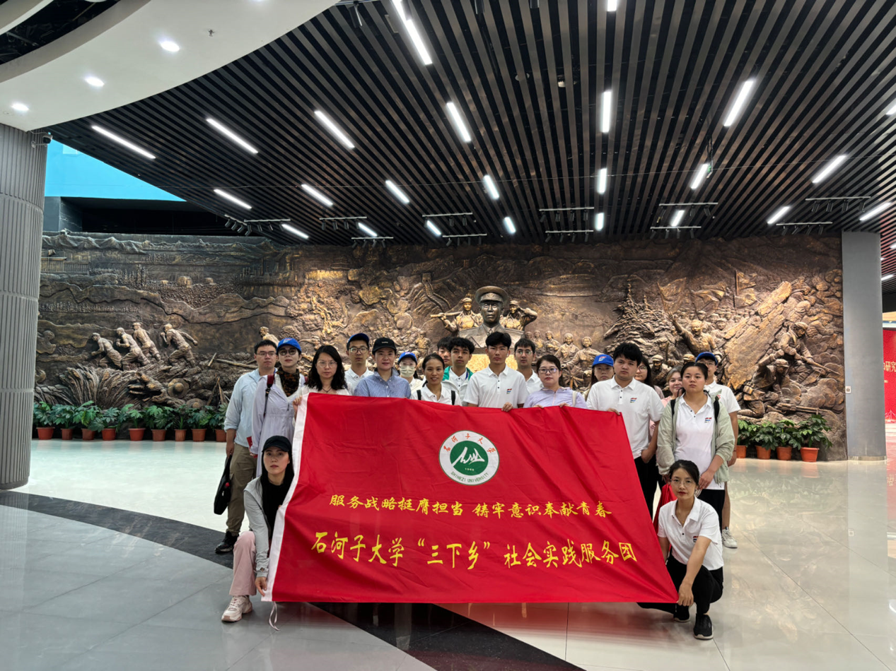 7月20日,实践团来到四十七团“三八线”沙海老兵纪念园和老兵精神纪念馆参观并挂牌。四十七团老兵镇位于塔克拉玛干沙漠南缘,七十多年前,1803名指战员历时18天携重六七十斤徒步1580里穿越被称为“死亡之海”的塔克拉玛干大沙漠来到这里,他们开展了艰苦卓绝的平叛守边和轰轰烈烈的垦荒生产,他们生前不能赴朝参战死后就葬在了长300米、宽80米的条田“三八线”。在参观过程中,队员们还观看了关于兵团历史的纪录片,影片中老兵们在戈壁滩上挥洒汗水、在风沙中坚守信念的画面,令人心潮澎湃。这群人的故事值得讲给所有的人听,“建功新时代,青春耀边疆”——石大学子企业行社会实践团也在场,成员们沉浸式感受先辈们的英勇事迹,深深被那段波澜壮阔的历史所打动,并从中汲取了砥砺前行的精神力量。yl23455永利官网副院长徐艳在参观后感言:“老兵精神是我们宝贵的精神财富,它激励着一代代青年学子勇担时代重任,为实现中华民族伟大复兴的中国梦不懈奋斗。我们有责任将这种精神融入日常的思政教学中,让更多的青年学子感受到这份力量。”