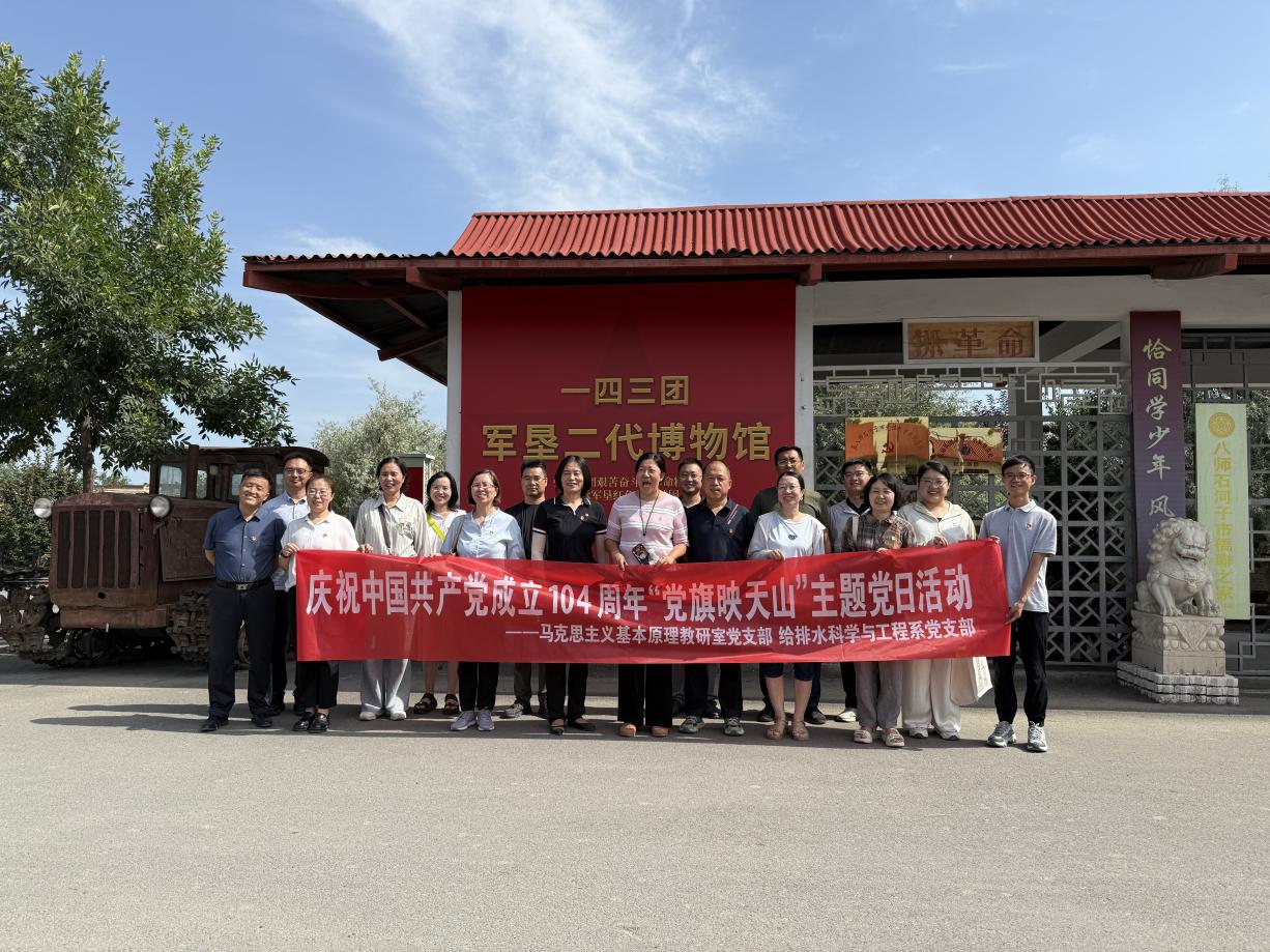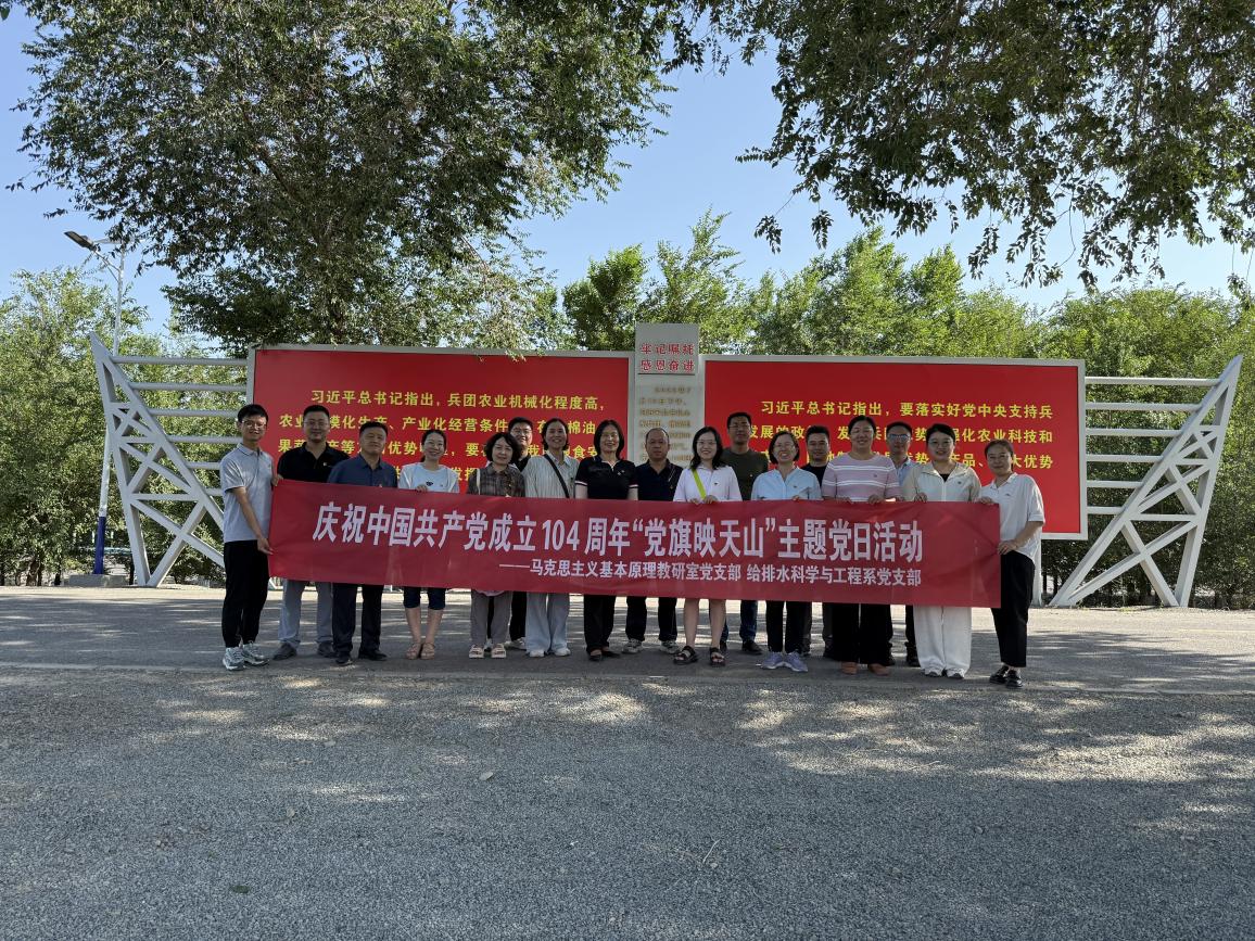 为庆祝中国共产党成立104周年,6月26日上午,yl23455永利官网马克思主义基本原理党支部、水利建筑工程学院给排水科学与工程系党支部联合开展“沿着总书记足迹 感悟思想伟力”——“党旗映天山”主题党日活动,感悟兵团精神,筑牢责任使命。